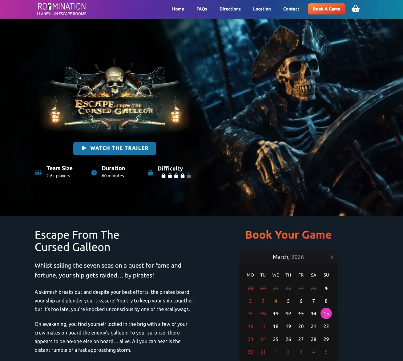 We developed a highly bespoke booking system for Roomination Escape Rooms, one of Mid-Wales' premier escape room attractions. Combining an atmospheric, immersive UI with a custom-integrated booking engine, we transformed their online presence into a seamless experience that guides players from curiosity to 'locked-in' within seconds.